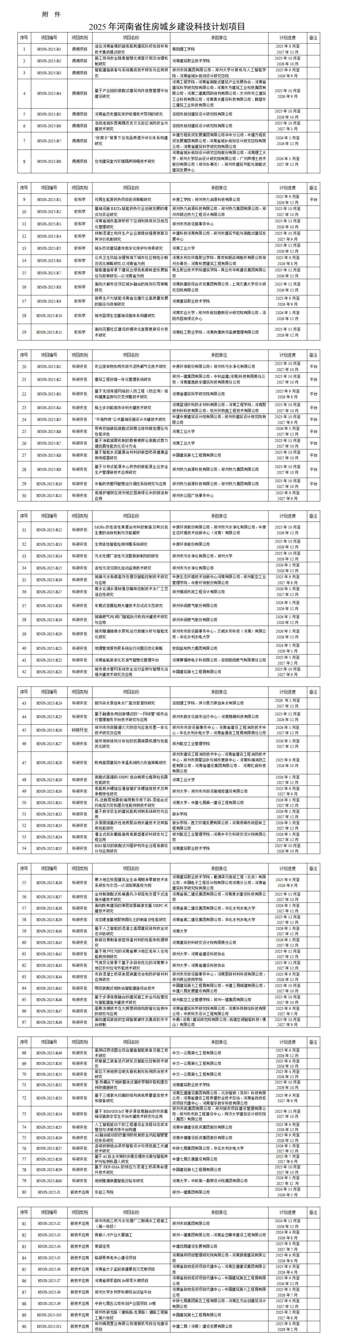 依据《关于组织申报2025年度河南省住房城乡建设科学技术计划项目的通知》(豫建科〔2025〕171号)要求,经单位申报、征求意见、专家评审、网站公示,我厅决定将90个项目纳入2025年河南省住房城乡建设科技计划项目,现予以印发。