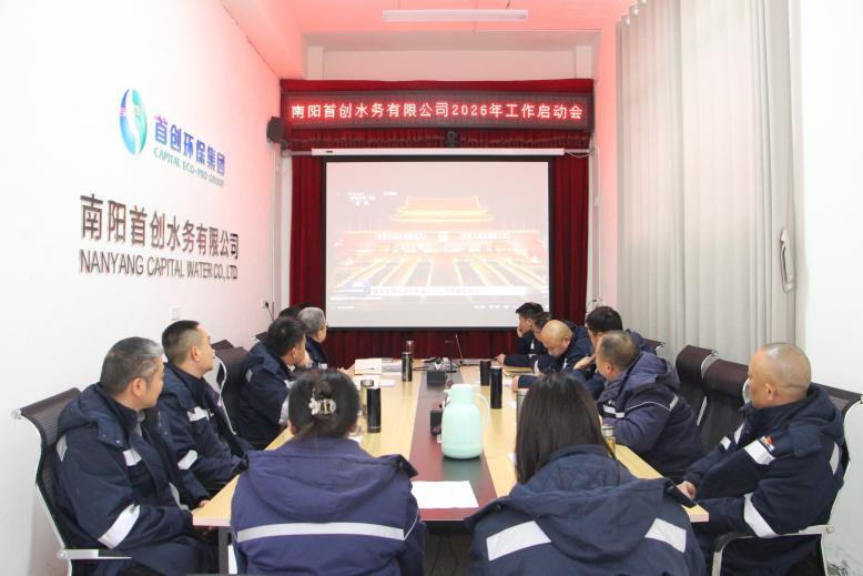 为进一步动员全体员工统一思想、凝聚共识,以昂扬姿态开启高质量发展新征程,1月4日,南阳首创水务有限公司组织召开2026年工作启动会,回顾总结2025年各项工作,部署2026年重点工作。公司总经理李公维,副总经理刘阳,总会计师王松波及各部门、区域经理参加会议。