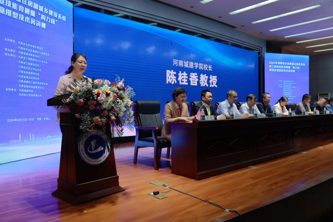 9月26日上午,2024年河南省住房和城乡建设系统职工职业技能竞赛建筑信息模型技术员决赛开幕式在河南省创建学院成功举办,大赛由河南省住房和城乡建设厅、河南省农业交通建设工会委员会主办,河南省建设教育协会承办;河南省工程勘察设计行业协会、河南省市政公用业协会、河南省智能建筑协会、河南省建设监理协会、河南省建设工程招标投标协会、河南省建设信息管理协会协办。河南省农业交通建设工会副主席胡长瑞、河南省城建学院校长陈桂香、河南省住房和城乡建设厅市场监管处副处长韩荣华、河南省农业交通建设工会二级主任科员胡海括、河南省建设教育协会会长崔恩杰、河南省工程勘察设计行业协会副秘书长赵利杰、河南省市政公用业协会秘书长马殿申、河南省智能建筑协会秘书长莫金宝、河南省建设监理协会副秘书长杨新爱、河南省建设工程招标投标协会秘书长朱亚博、河南省建设信息管理协会会长秦士同、河南省建设教育协会秘书长李苗、北京构力科技有限公司教育事业部总经理楚仲国、河南五建建设集团有限公司BIM中心主任朱清,及河南省城建学院相关职能部门及参赛选手共400余人出席开幕式,开幕式由该校校党委副书记、工会主席王靖主持。